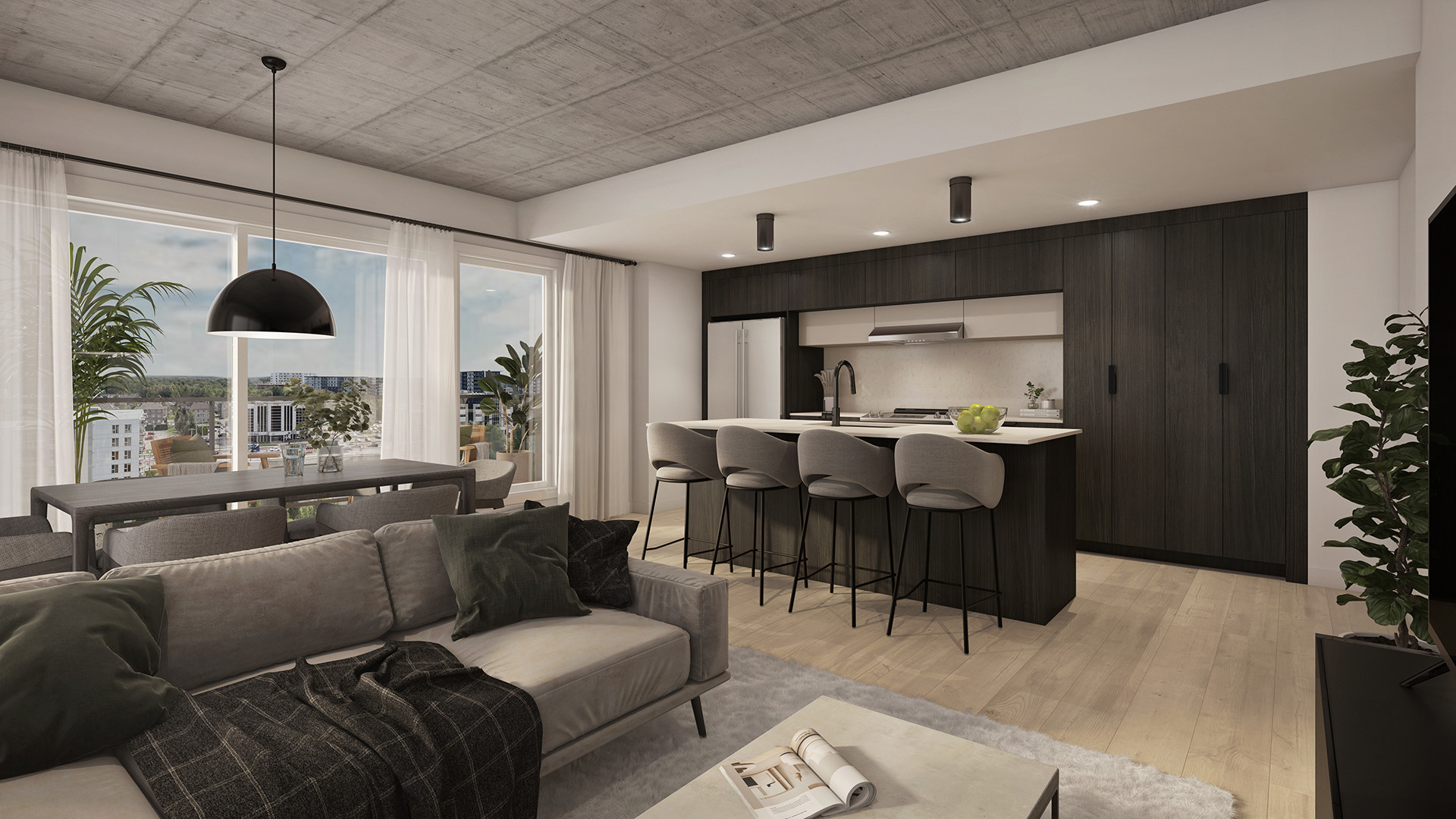 Typologies variées : du studio au 5 ½, avec options bureau vitré à même votre unité