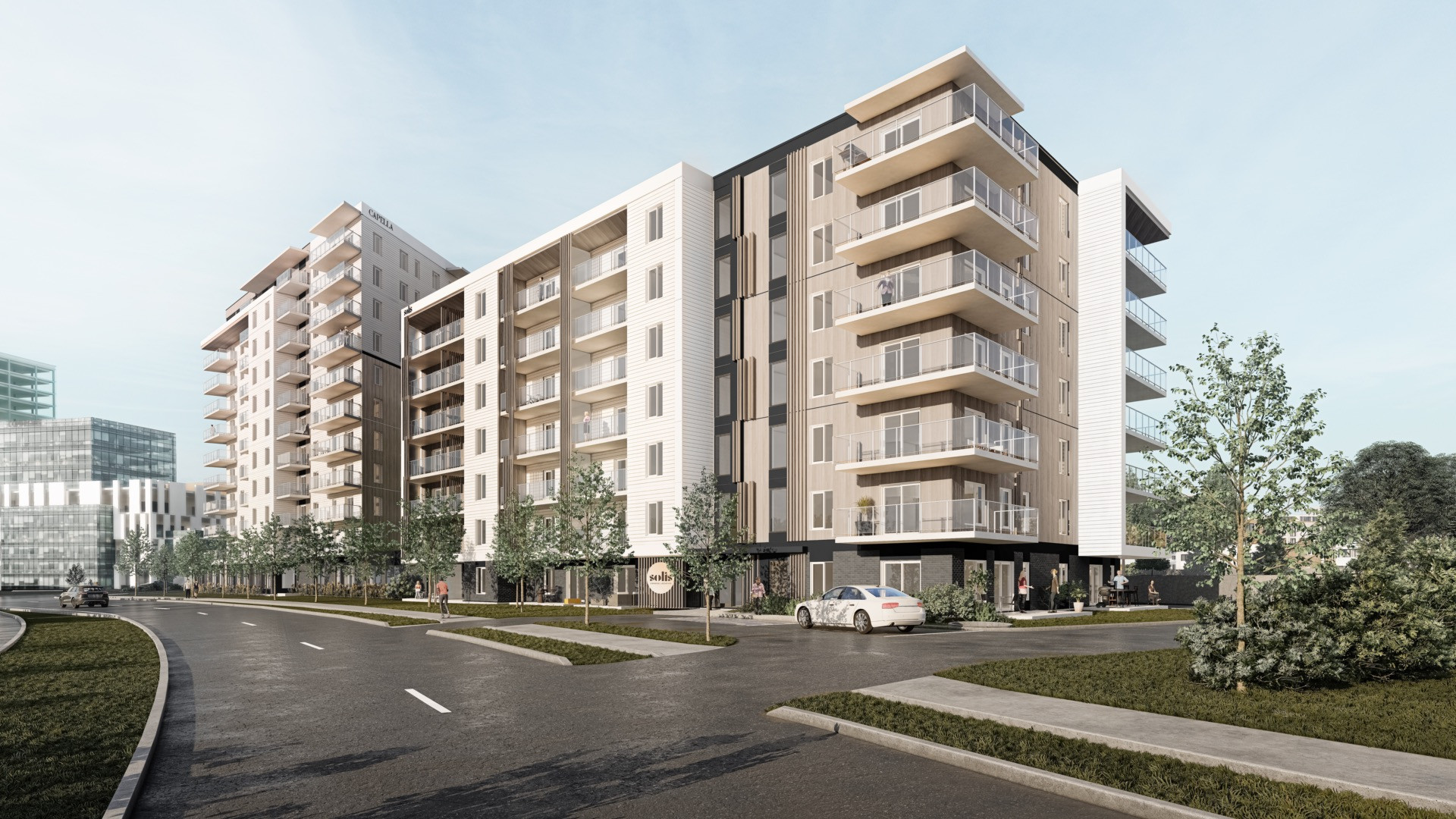 Capella, complexe pour retraités, est le projet voisin et complémentaire à Solis. Un corridor d’accès sécurisé unira les deux projets : les occupants du Solis pourront avoir accès aux aires communes du Capella (gym, restaurant, terrasse intérieure, billard, etc.), à un moindre coût, sans même avoir à mettre le nez dehors.