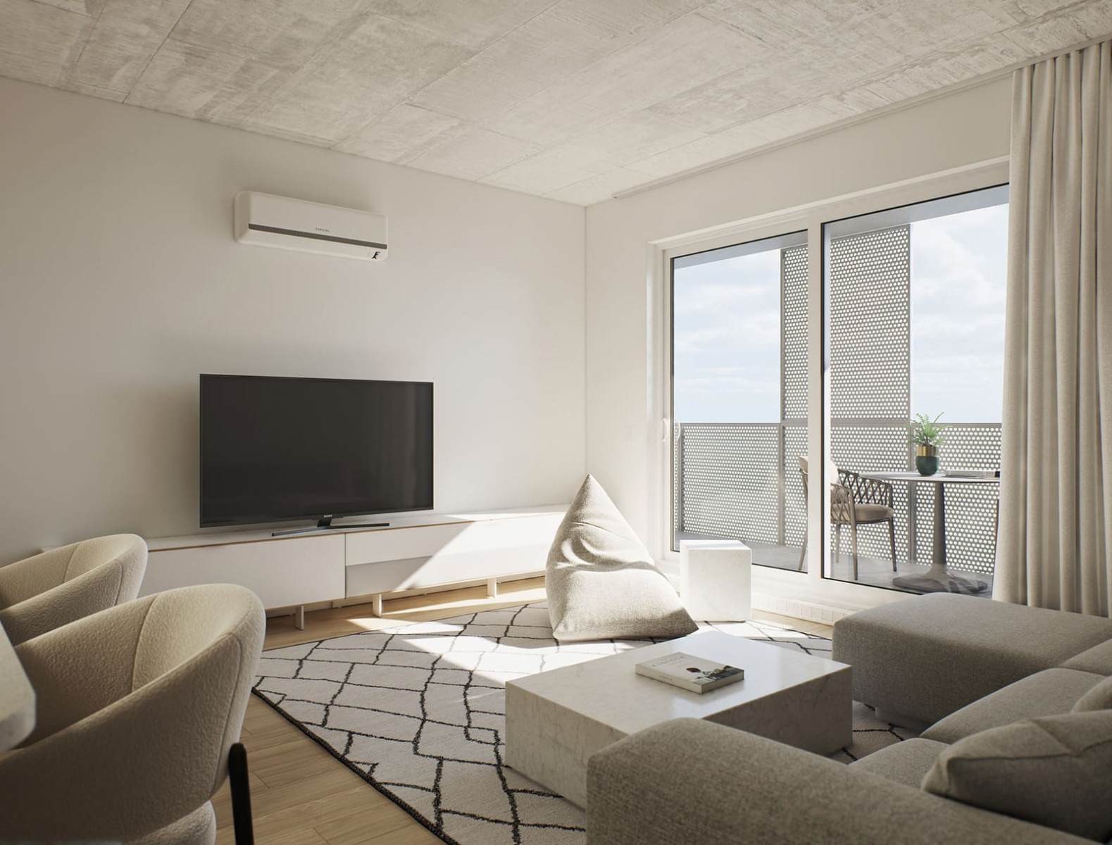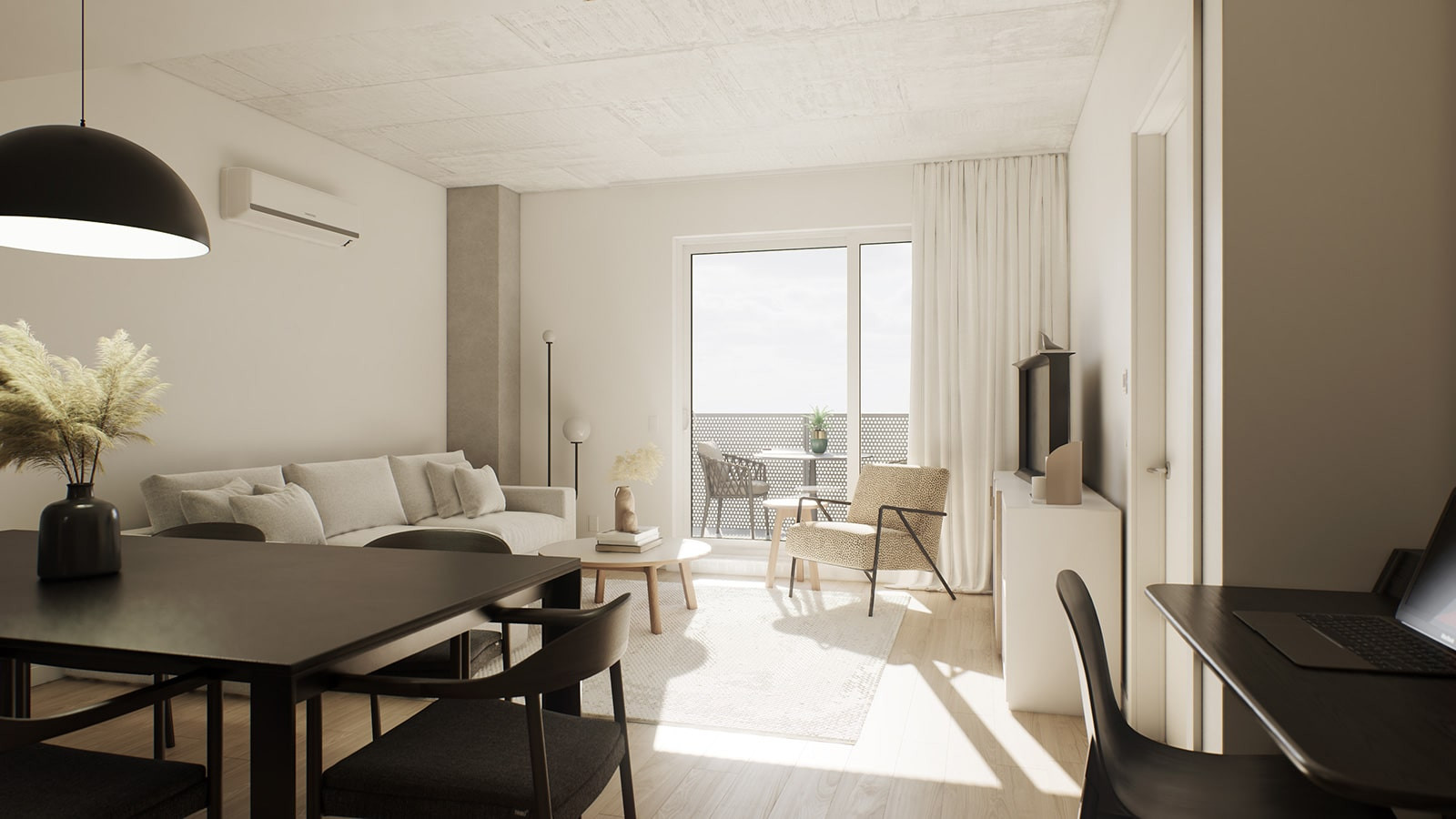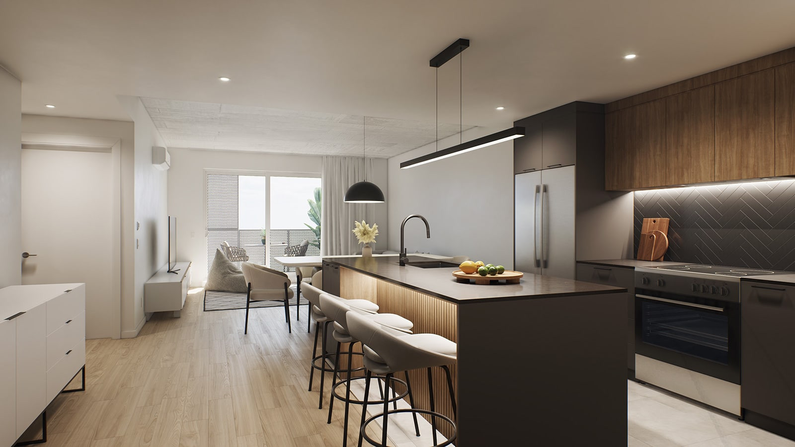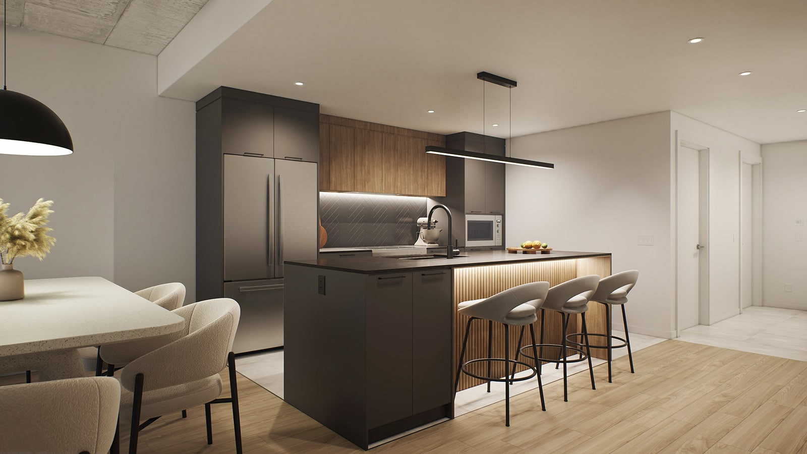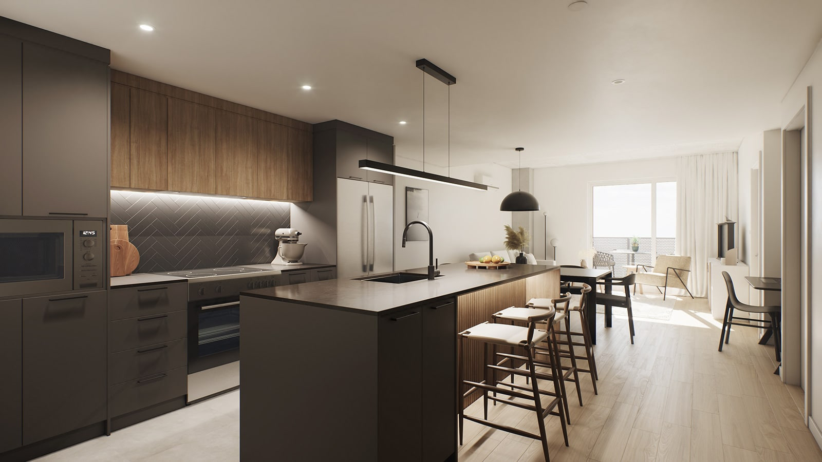 Une première phase de 12 étages fera office de lancement pour le quartier locatif. Situé au coin Courchevel et de la Concorde, une variété complète d'appartements allant du 2 1/2 au 5 1/2 seront disponibles en plus de maisons de villes au rez de chaussé avec une terrasse privée.