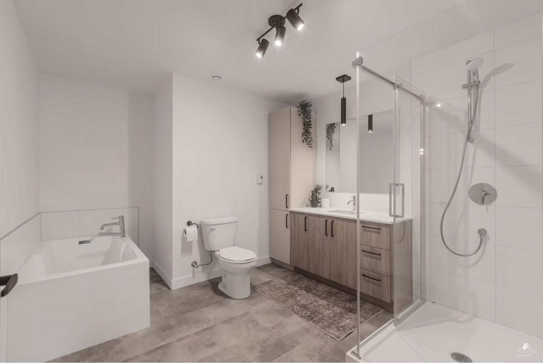 Les unités se démarquent par leurs très grandes superficies, leurs plans fonctionnels et leurs finis actuels. Bénéficiez d’un bain distinct de la douche et de deux lavabos à la salle de bain, beaucoup de rangement en cuisine, ilot central, et même deux balcons, un atout rare et recherché. Les visuels présentés illustrent autant des unités existantes que des projections intérieures, afin de refléter fidèlement la qualité de vie déjà en place !
