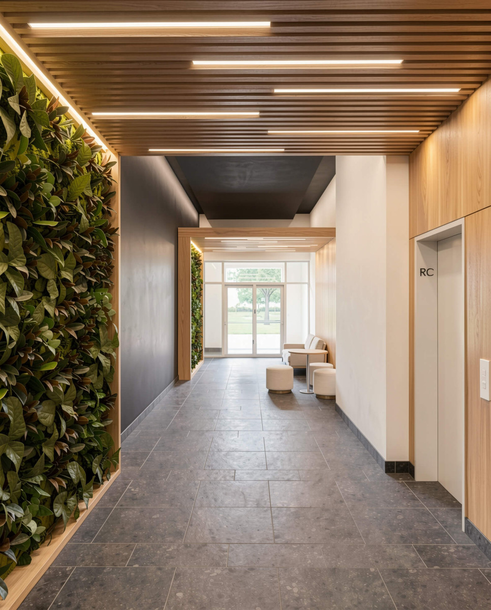 Cour intérieure végétalisée favorisant la quiétude et le contact avec la nature