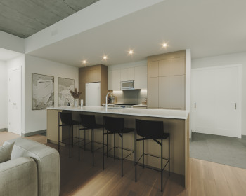 La Klé a fait le choix de l’esthétisme. Colonnes et plafond de béton apparent, plancher de bois franc et céramique grand format, comptoir de quartz blanc, électroménagers de qualité… La séduction sera l’un des atouts de votre nouvelle demeure!
