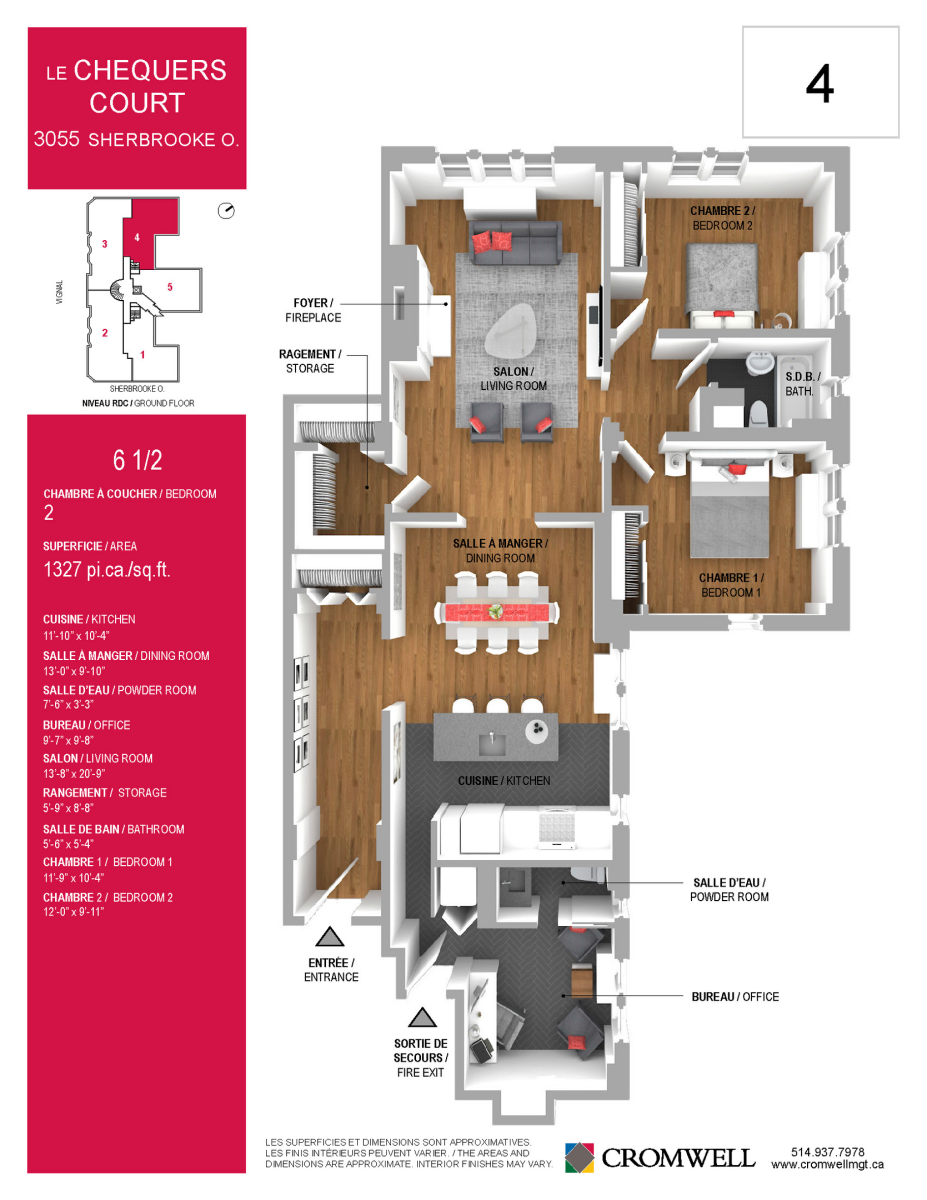 Tout nouveau locataire qui signe un bail de 12 mois entre le 1er octobre et le 1er novembre 2024 et débutant le 1er novembre 2024 , obtient 1 mois gratuit . Le mois gratuit est applicable sur le dernier mois du terme. Cette promotion s'applique sur toutes les superficies d'appartement.