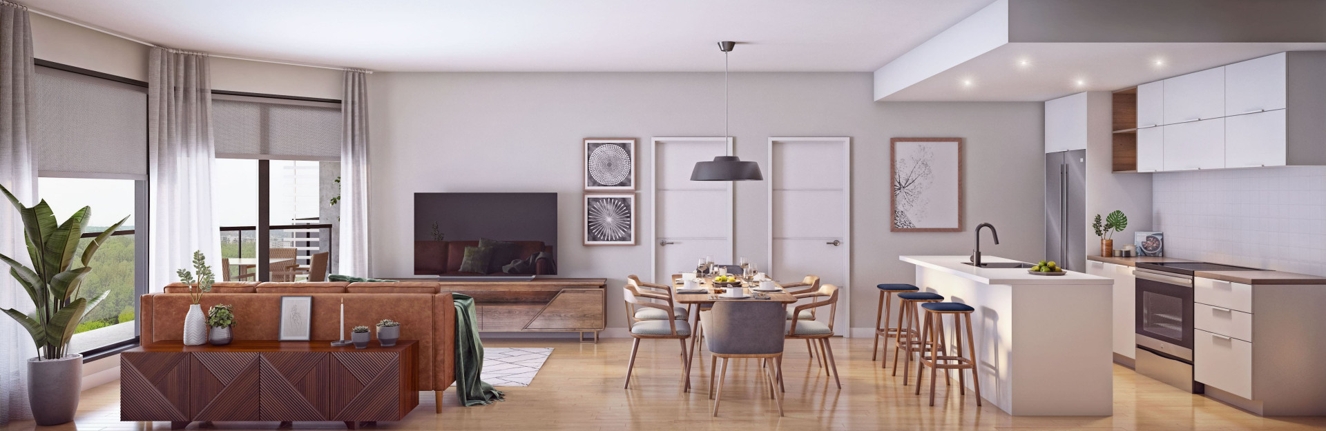 Le Huppé, c’est 187 condos locatifs dont 29 unités prestiges, conçus et construits avec le plus grand soin, mais aussi des espaces communs qui n’ont rien de commun et des vues à couper le souffle sur la ville ou la forêt.