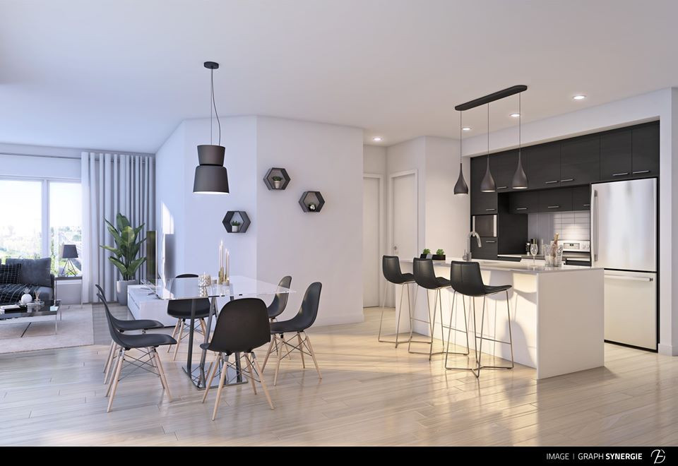 Chaque unité offre un design urbain et des matériaux de grande qualité. Une grande fenestration, un aménagement à aire ouverte et une cuisine moderne avec comptoir de quartz, nos condos sont tous climatisés et sont parfaitement conçus afin d’offrir des espaces de vie conviviaux.