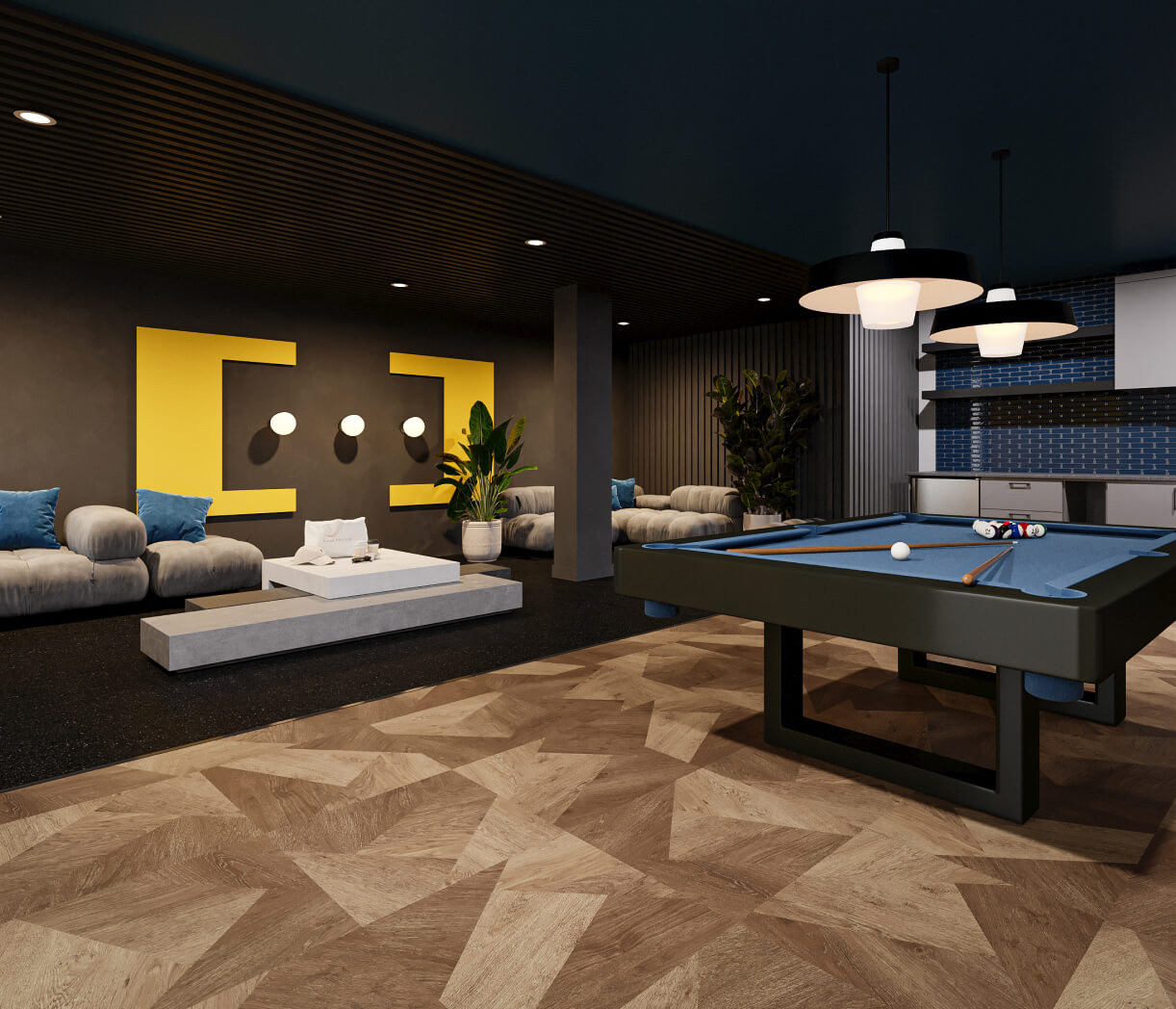 Salle commune avec table de billard