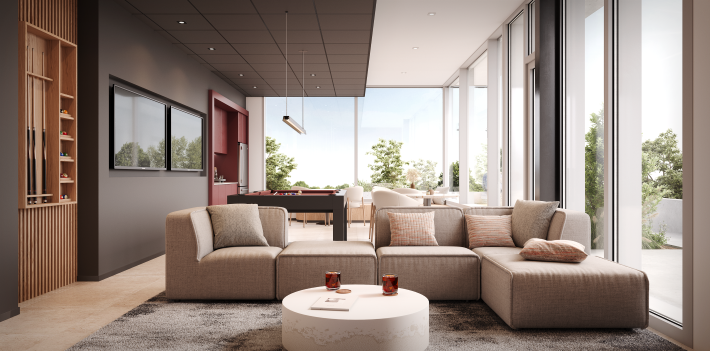 Quartier Élévation, c’est plus de 600 unités locatives qui seront érigées autour de multiples espaces communs pour donner vie à un quartier centré sur l’action et le bien-être. Autant à l’extérieur qu’à l’intérieur, ces lieux dynamiseront votre quotidien en plus de l’embellir, spécialement avec son grand parc linéaire aux abords de la rivière.